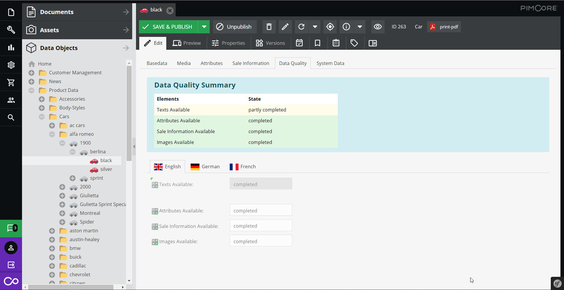 In car objects, we have data quality reports included. Just open a car object and switch to the data quality tab.